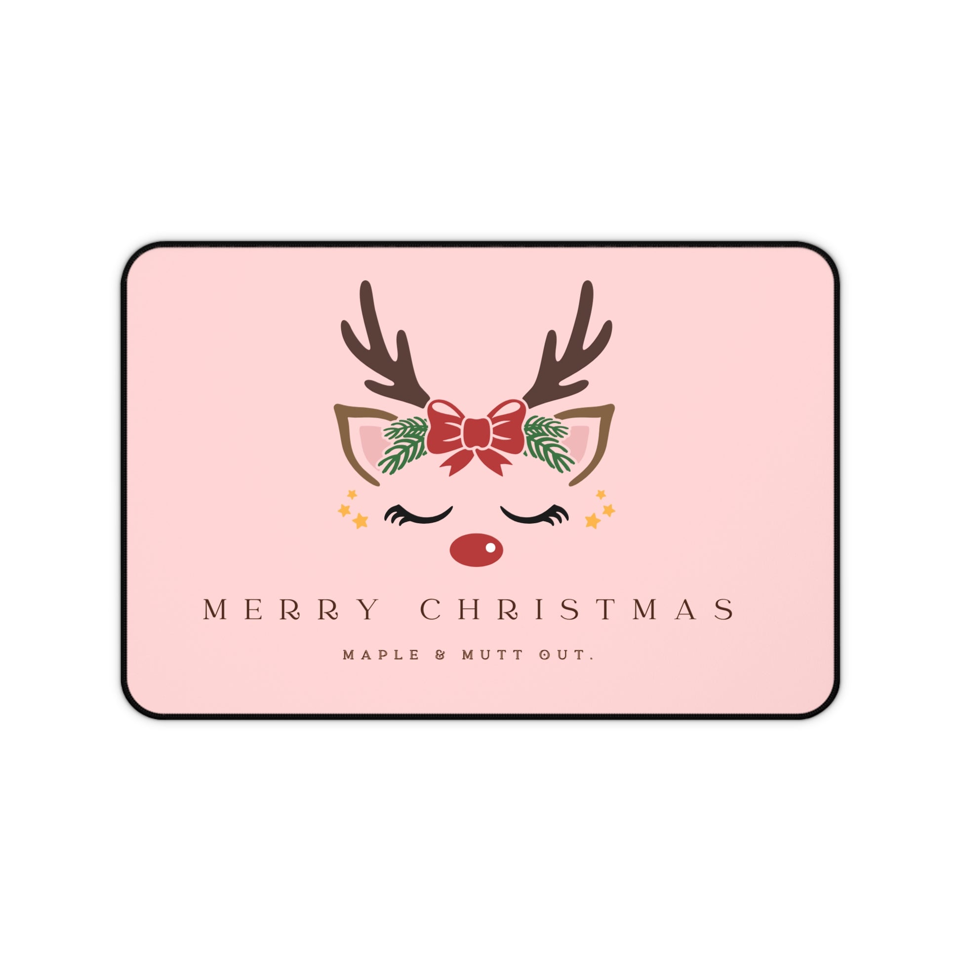 Christmas Reindeer Desk Mat – Pink “Merry Christmas” Holiday Mousepad