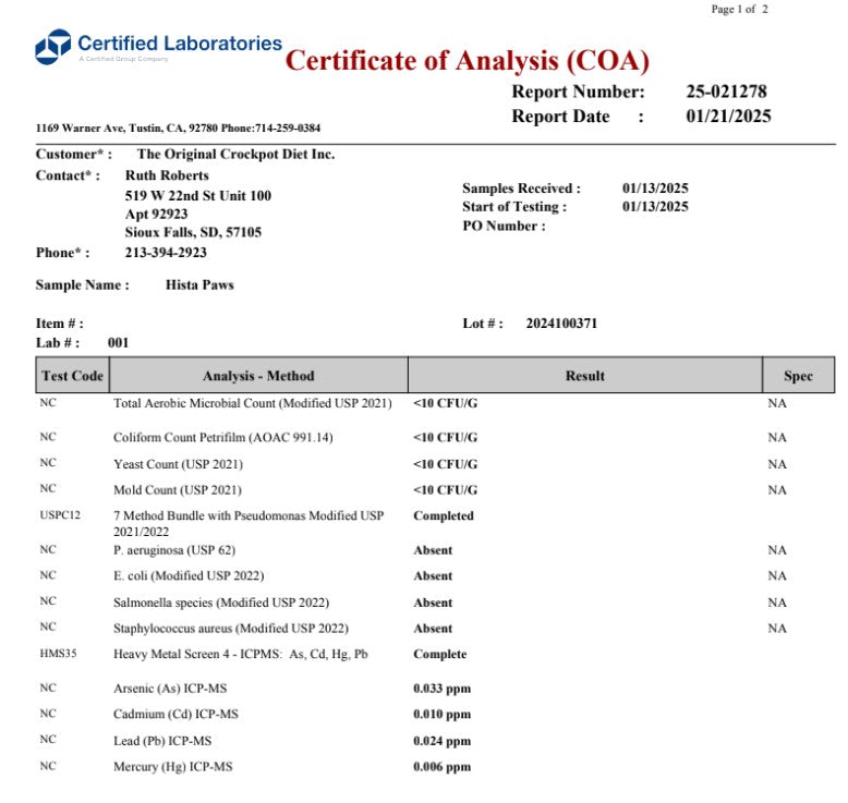 Hista Paws is a gentle, plant-based formula made with naturally sourced ingredients like Quercetin and Nettles. Designed for both dogs and cats, it’s a popular choice among pet parents looking for natural ways to support their companions—especially during times of seasonal or environmental changes.