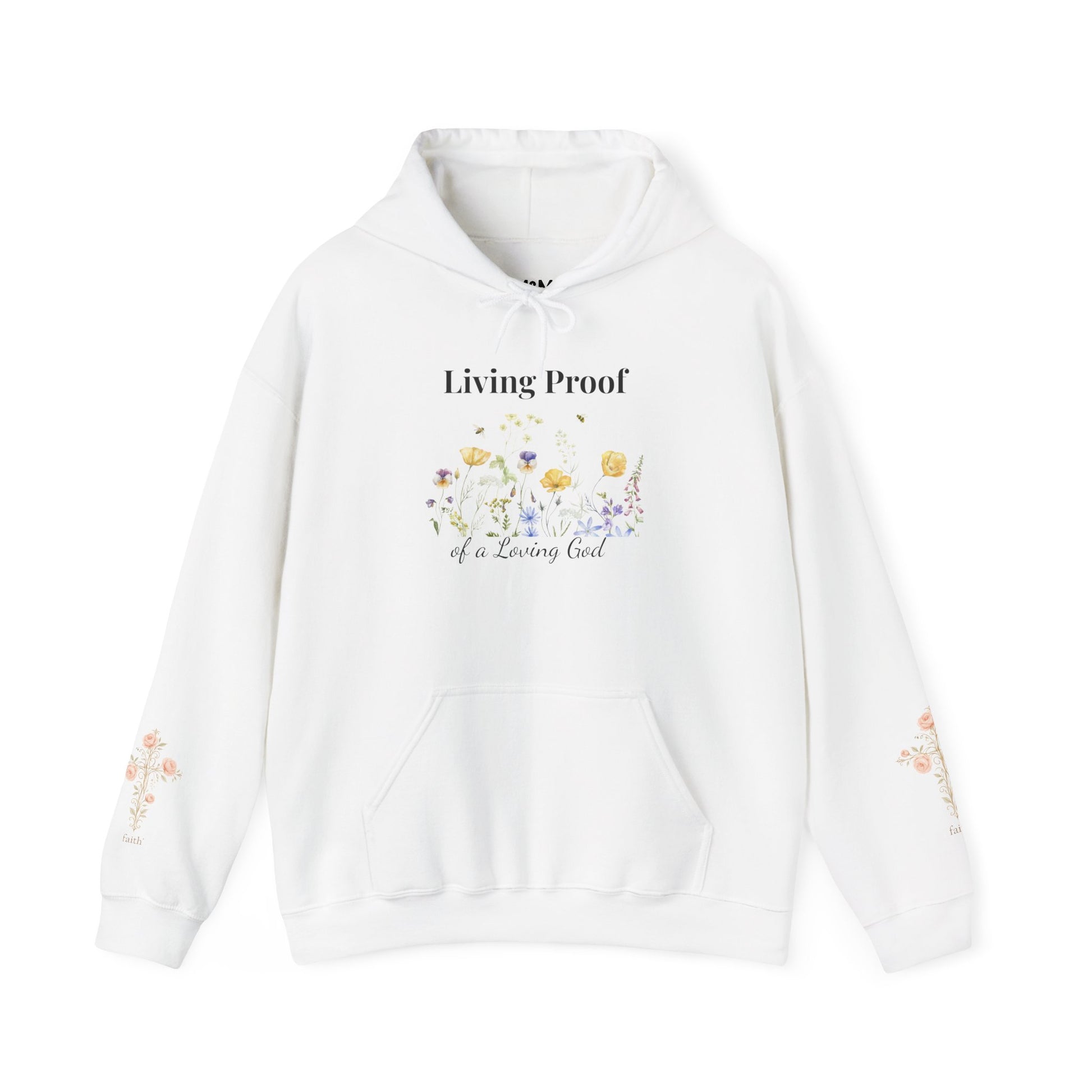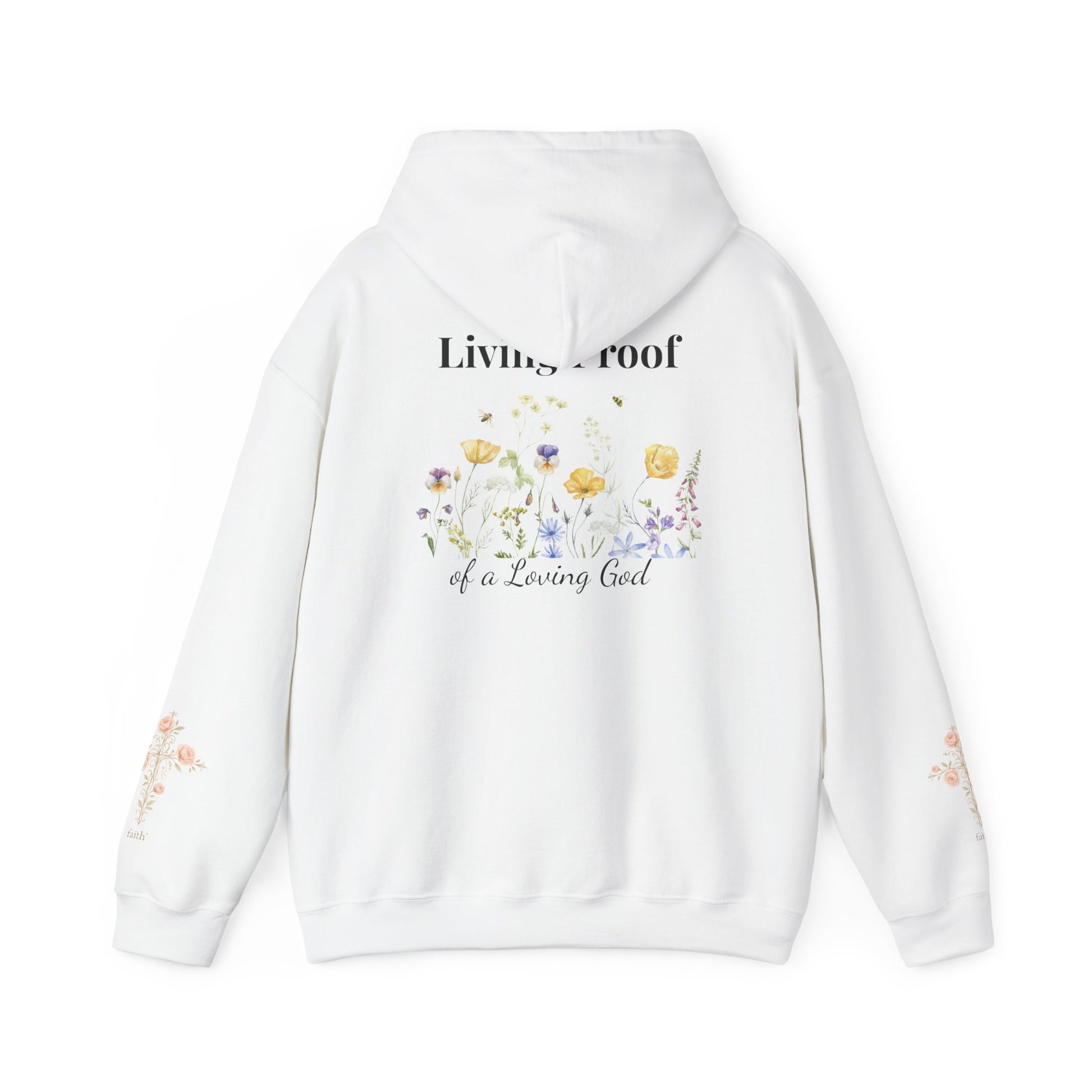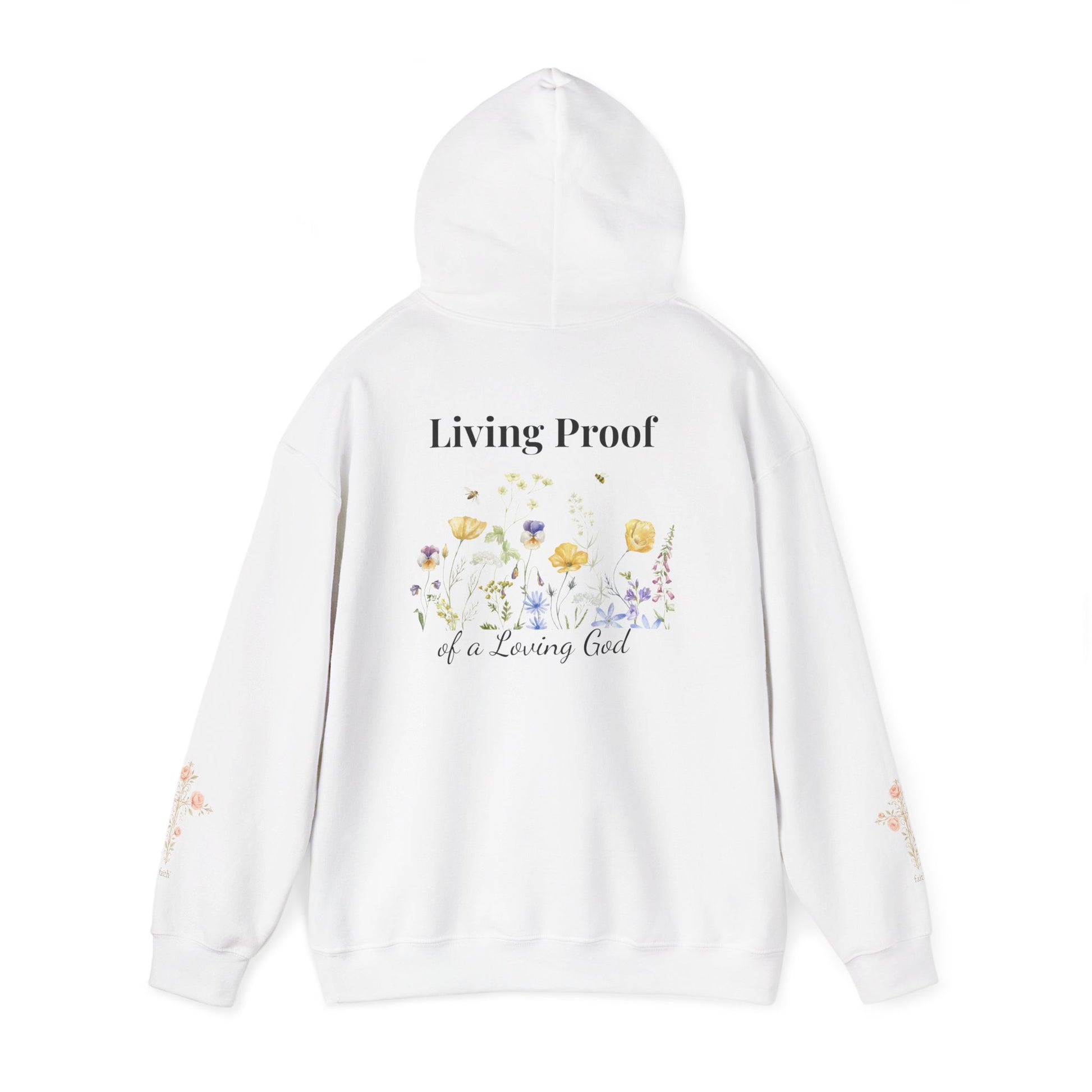 Living Proof Floral Hoodie — "Living Proof of a Loving God" Inspirational Pullover