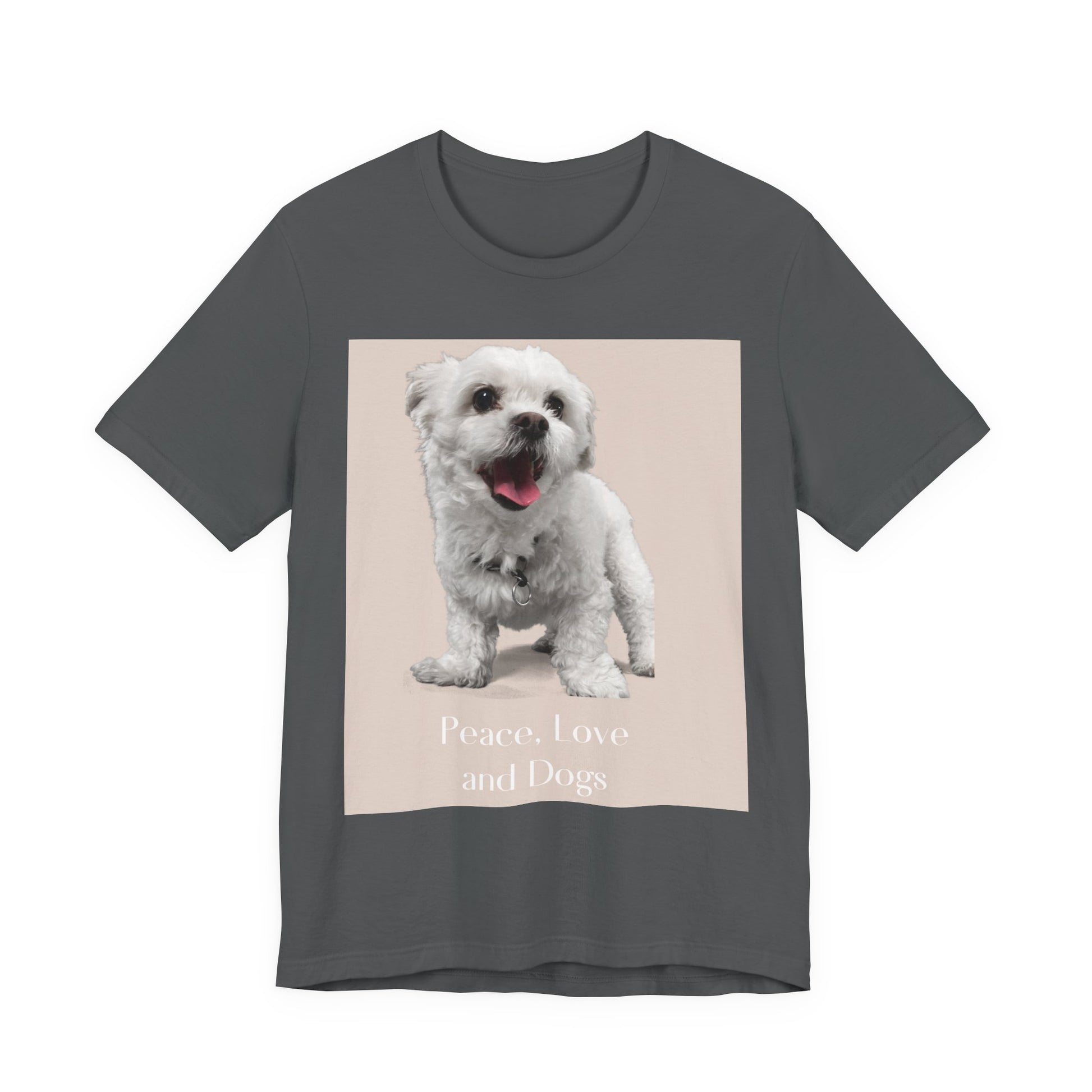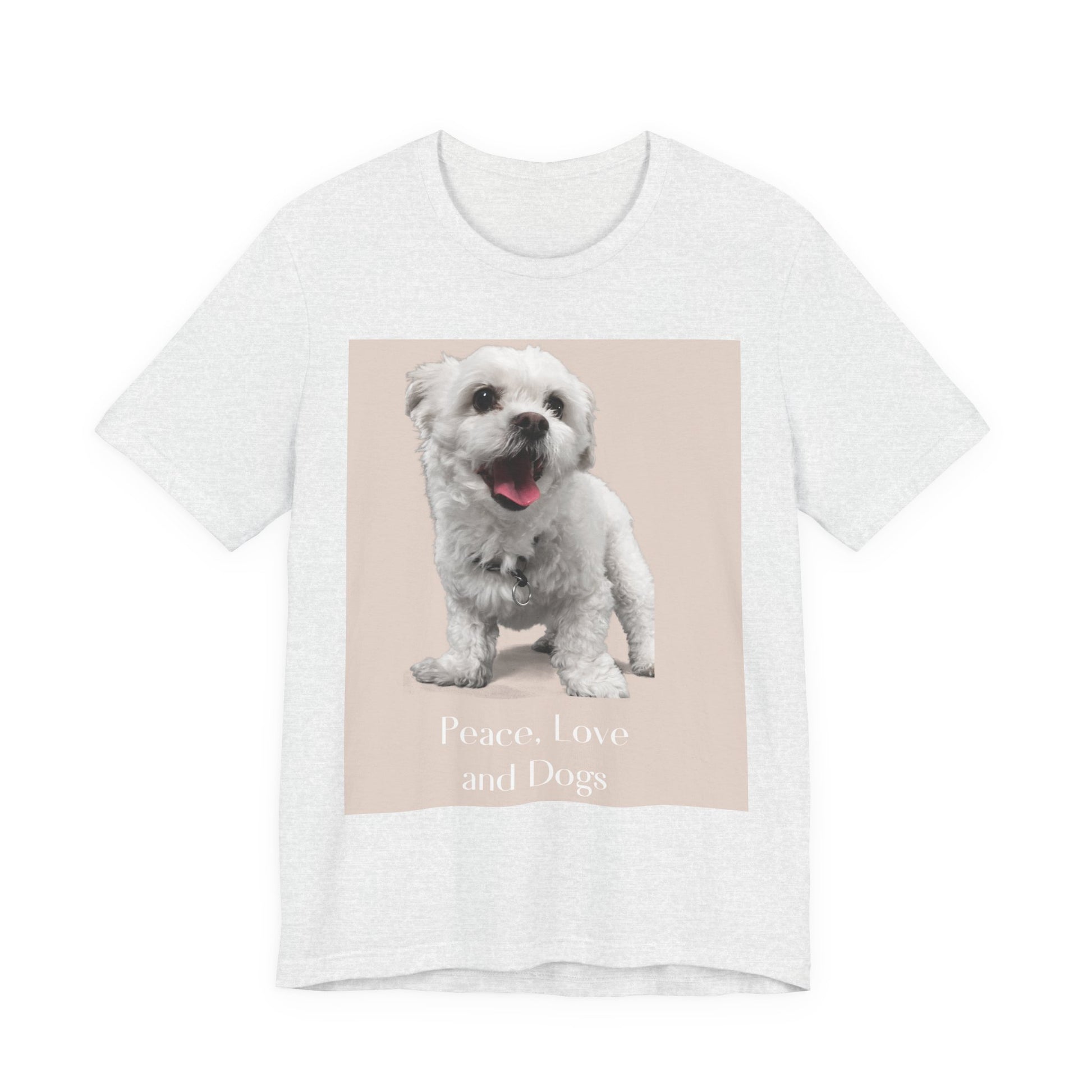 Peace, Love and Dogs T‑Shirt — Cute Dog Photo Tee