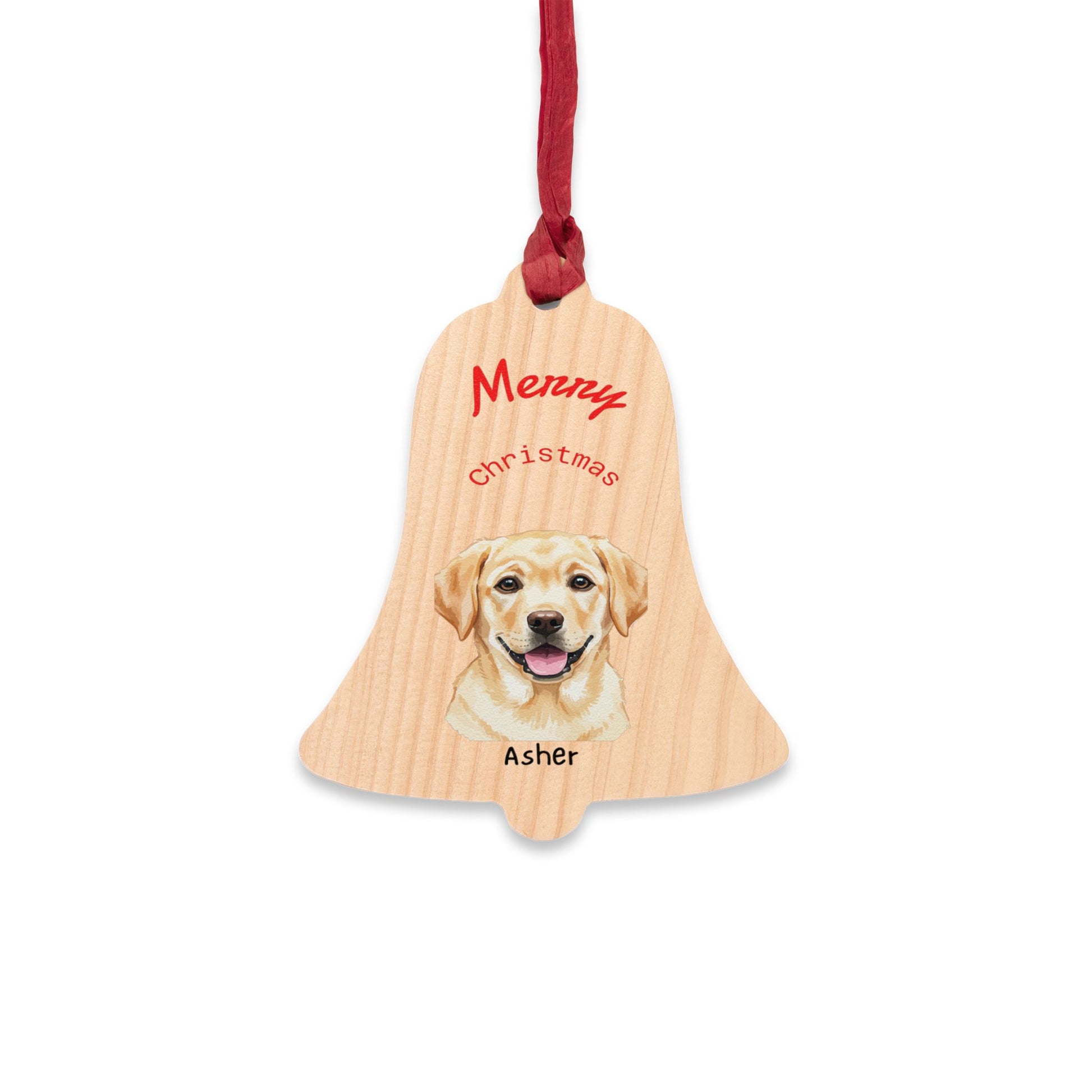 Personalized Dog Bell Wooden Ornament – "Merry Christmas" Pet Photo Keepsake