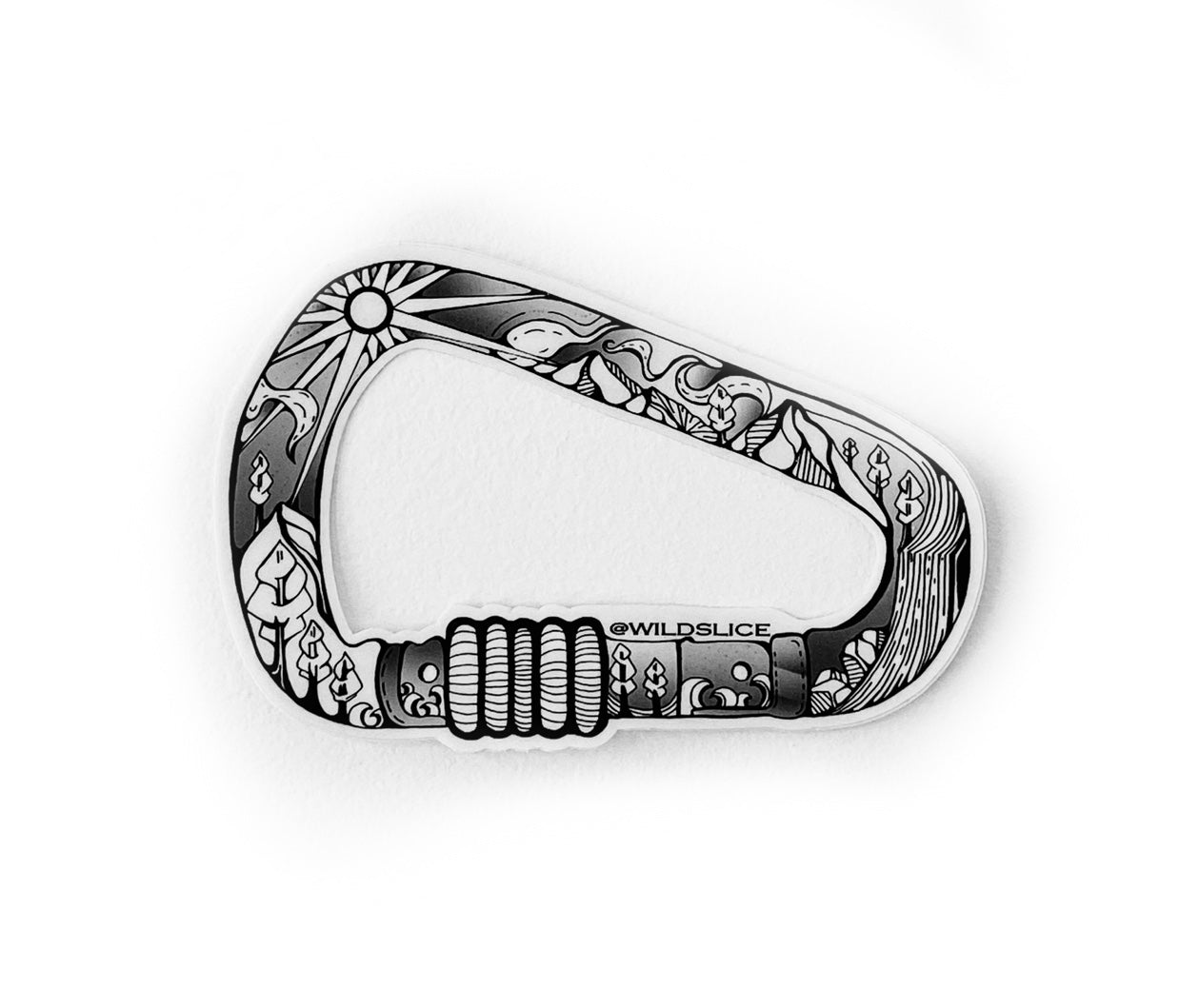 "Carabiner" stickers are made of durable weatherproof vinyl, for indoor or outdoor use. Perfect for electronics, water bottles, notebooks, cars, and other flat surfaces. The border, when peeled, is opaque white as seen in the photos. Size: 4" Choose size from the drop down menu. Artwork: The original image was hand drawn with ink in the pointillism style. Shipping: All stickers are shipped with a stamp in a standard envelope. Because of this, no tracking information will be provided. If you would like to upgrade to shipping with tracking please let me know before ordering so I can create a custom listing for you.