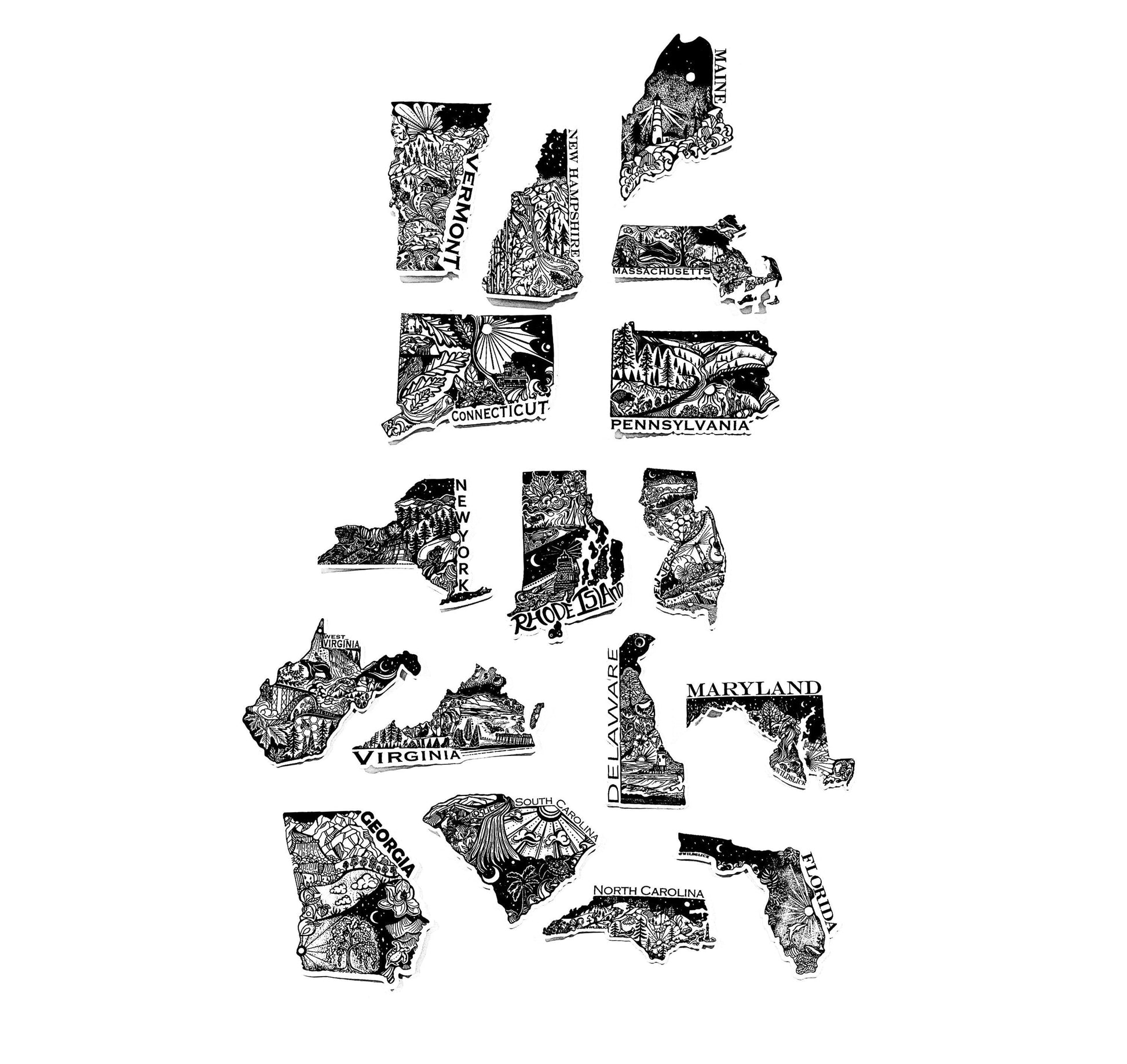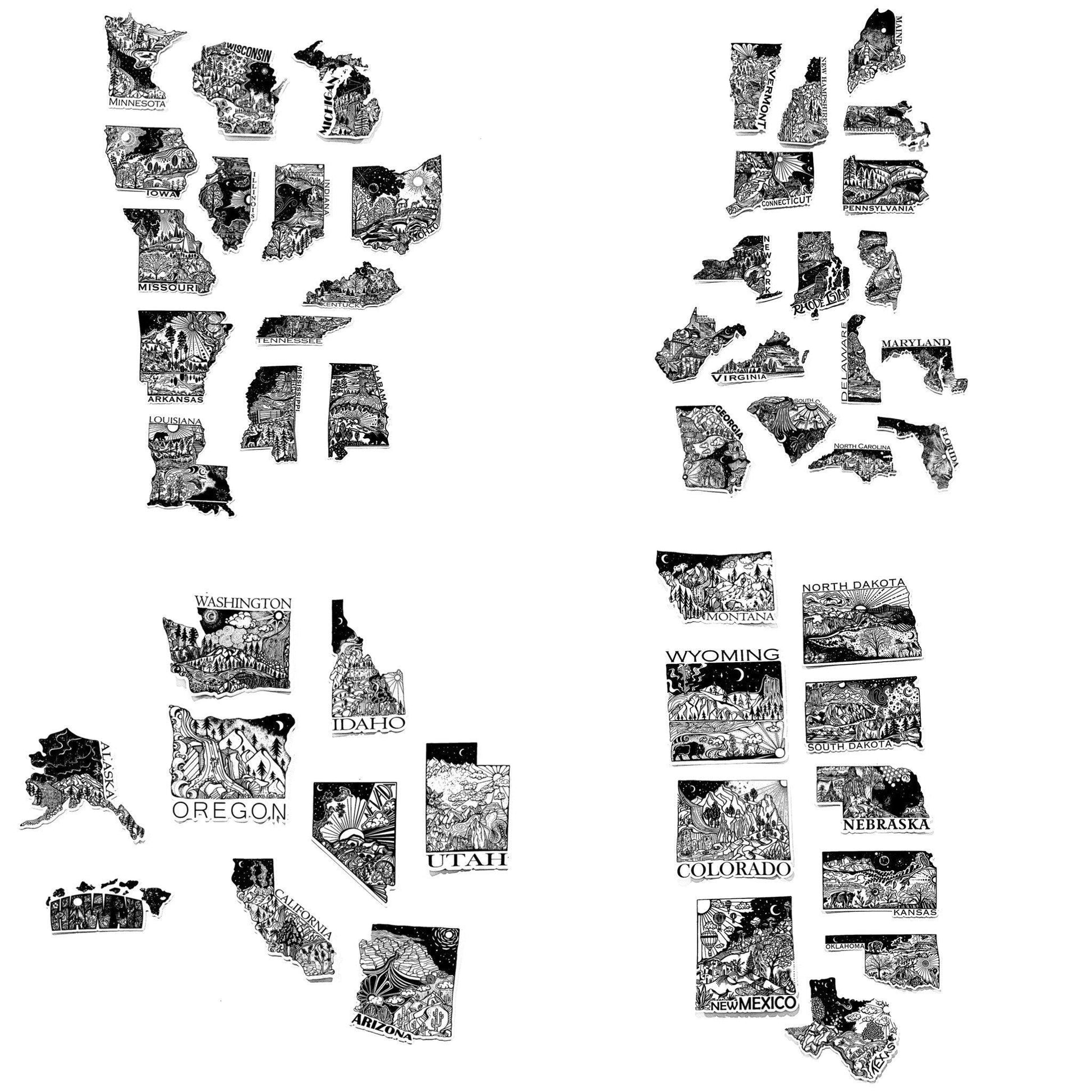USA sticker pack. Save 97 dollars! 50 state stickers 4" Weatherproof and durable, Outdoor sticker, Travel sticker, Wanderlust, Moon , Trees