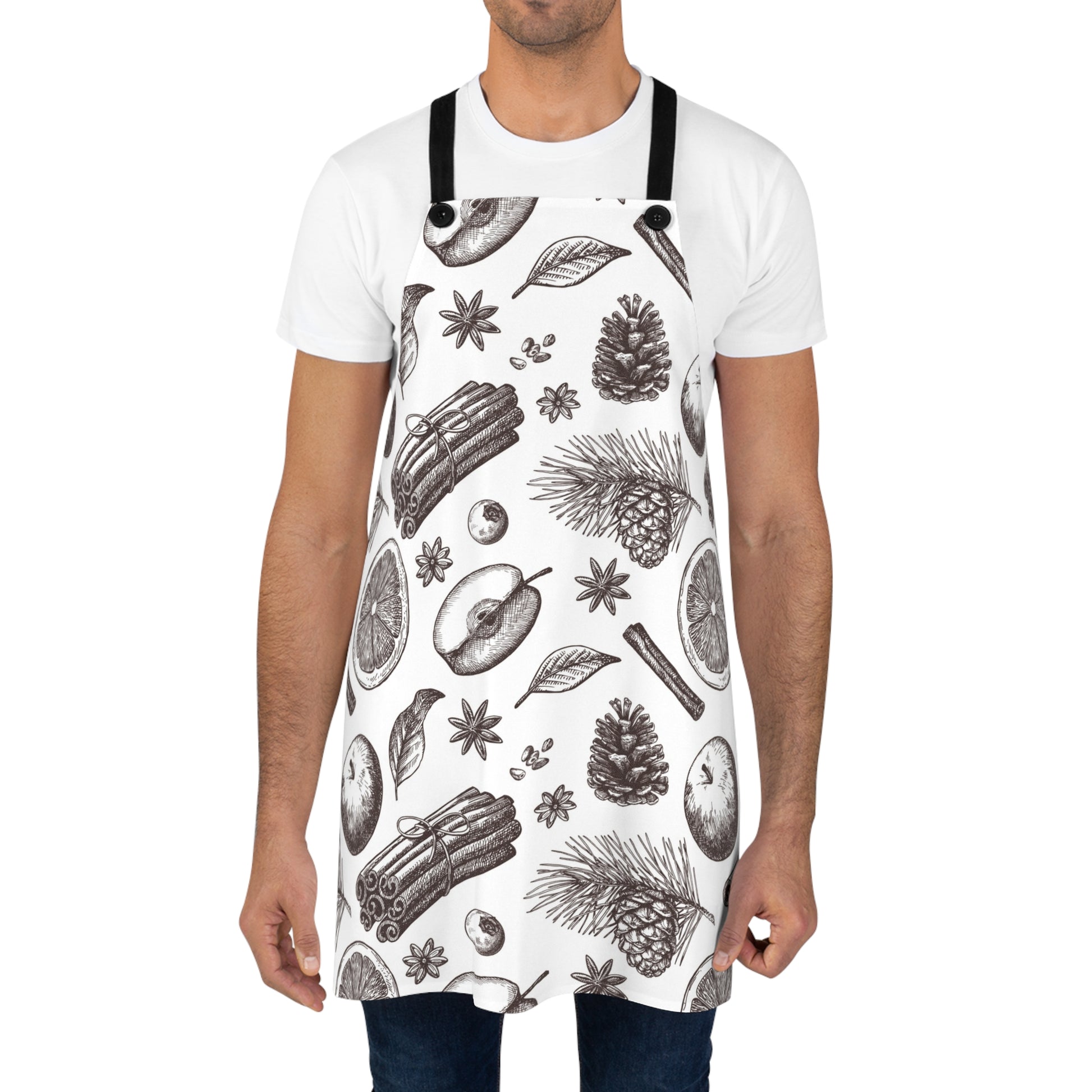 Vintage Christmas Apron — Hand-Drawn Winter Spice Pattern Cooking Apron