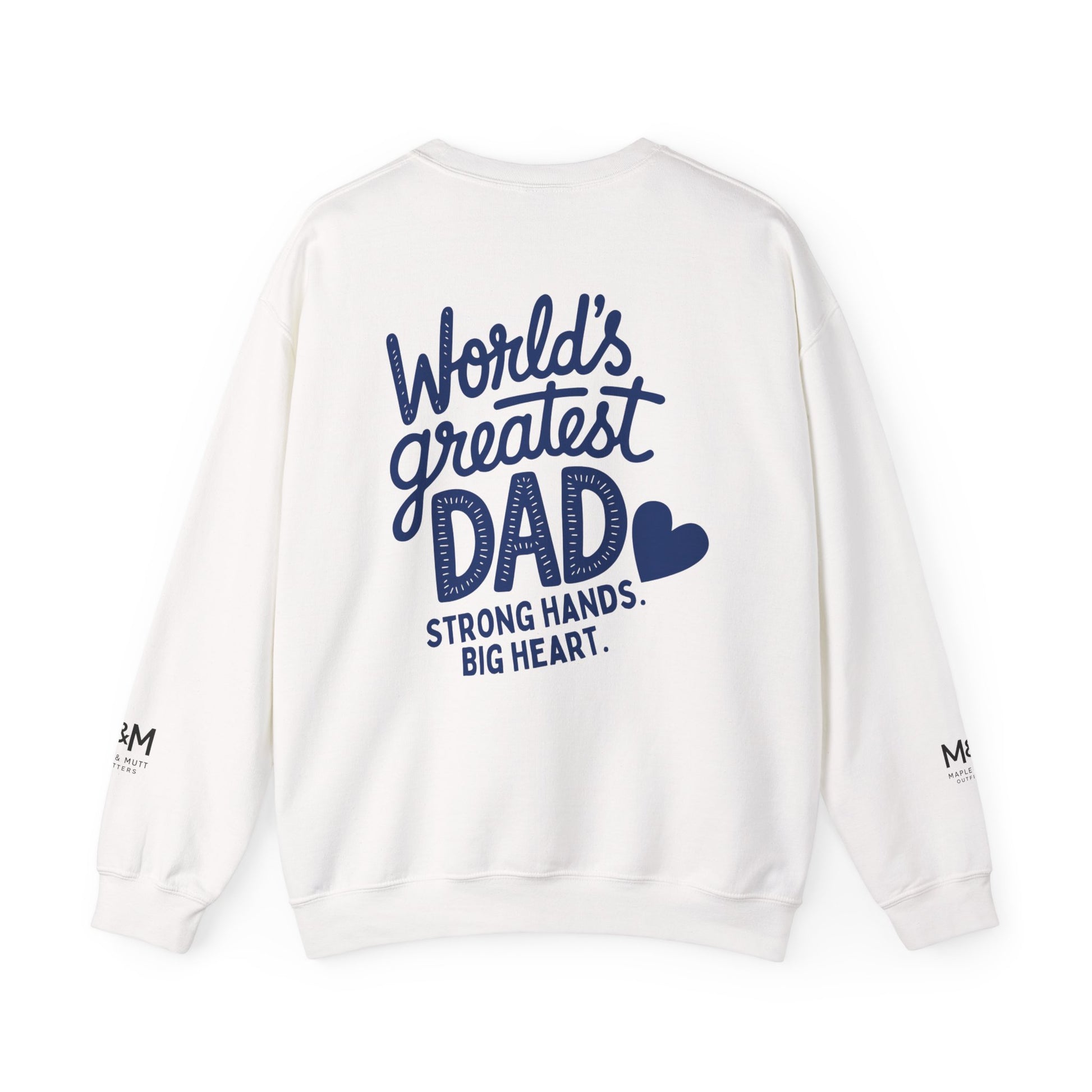 A cozy and comfortable sweatshirt that proudly proclaims, 'world's greatest dad'. Perfect for any dad who wants to show off their title with pride. Ideal for Father's Day or birthdays, this sweatshirt is a great gift for any father figure in your life.